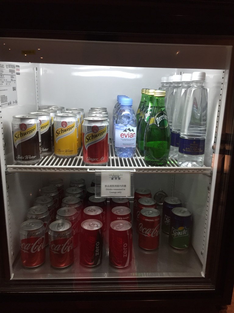 還有可樂、雪碧、氣泡水與evian礦泉水