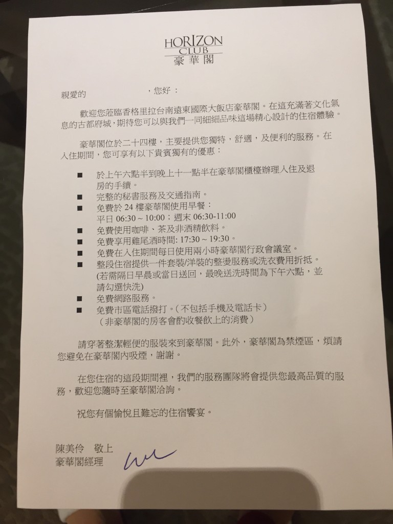 接著再度參觀香格里拉的設施~其實來高級飯店一定要享受一下飯店設施,早早入住晚晚checkout,景點可以不用急著跑(台南景點也還好XD)