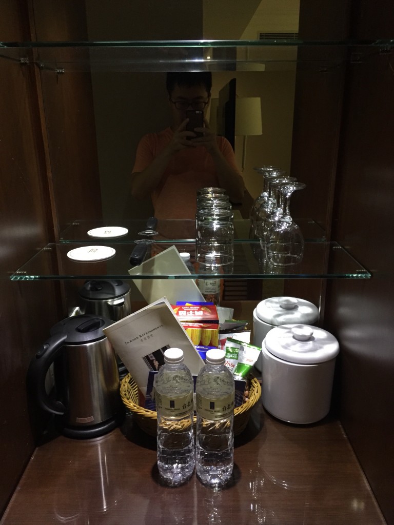 迷你吧的部分則有兩瓶礦泉水、熱水壺及杯子等等,餅乾小點是要付費的~
