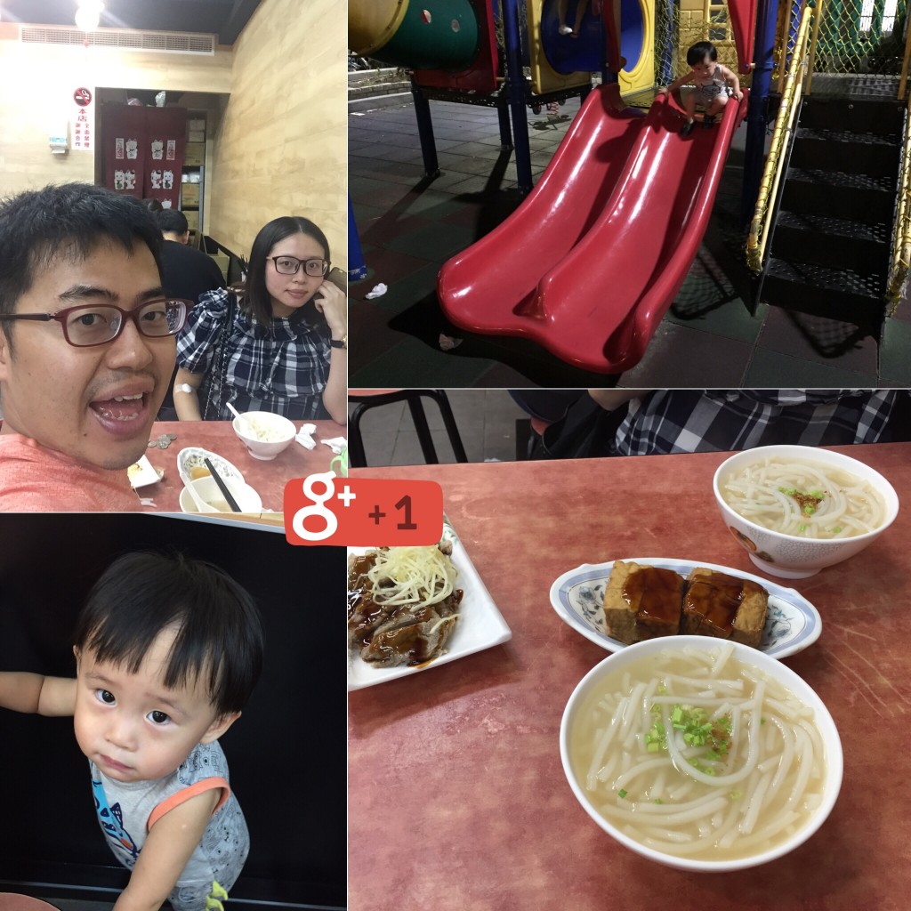 吃飽哈弟一直想要溜滑梯,給他溜了一下,我們又跑去麵嫂米粉湯享用一下米粉湯、油豆腐與小菜,這家好吃度就中等了