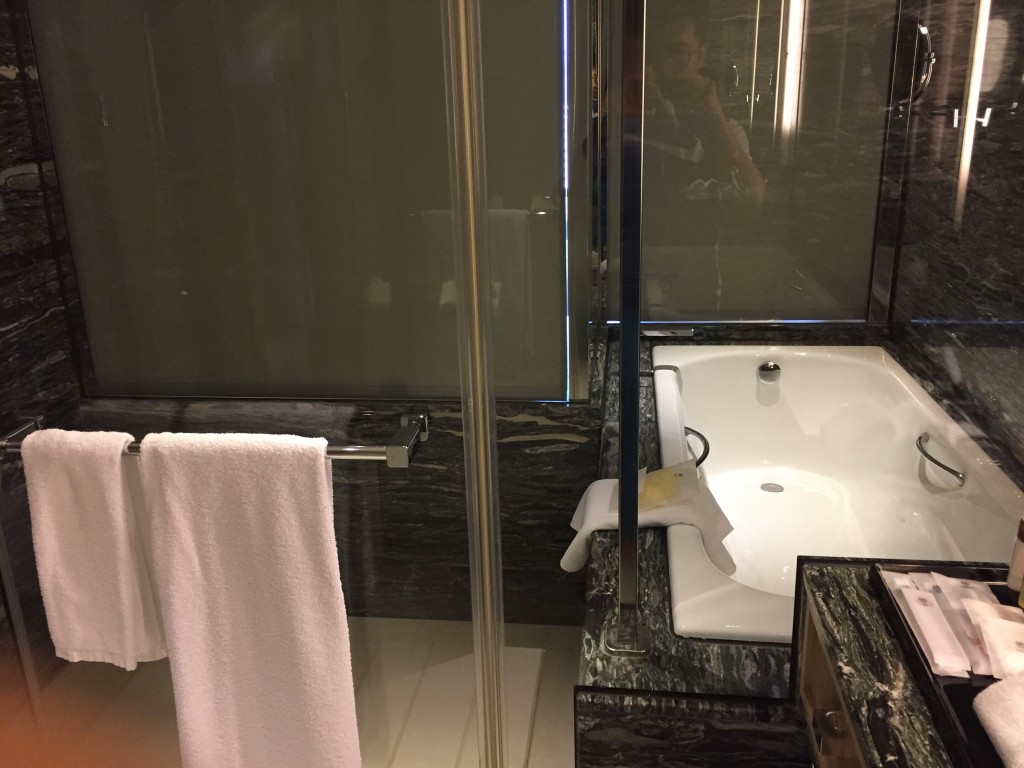 浴室內有個浴缸,鏡子都玻璃的有點害羞,不過印象中有簾子可以拉上來倒是