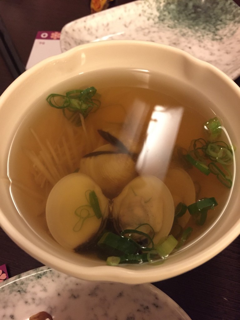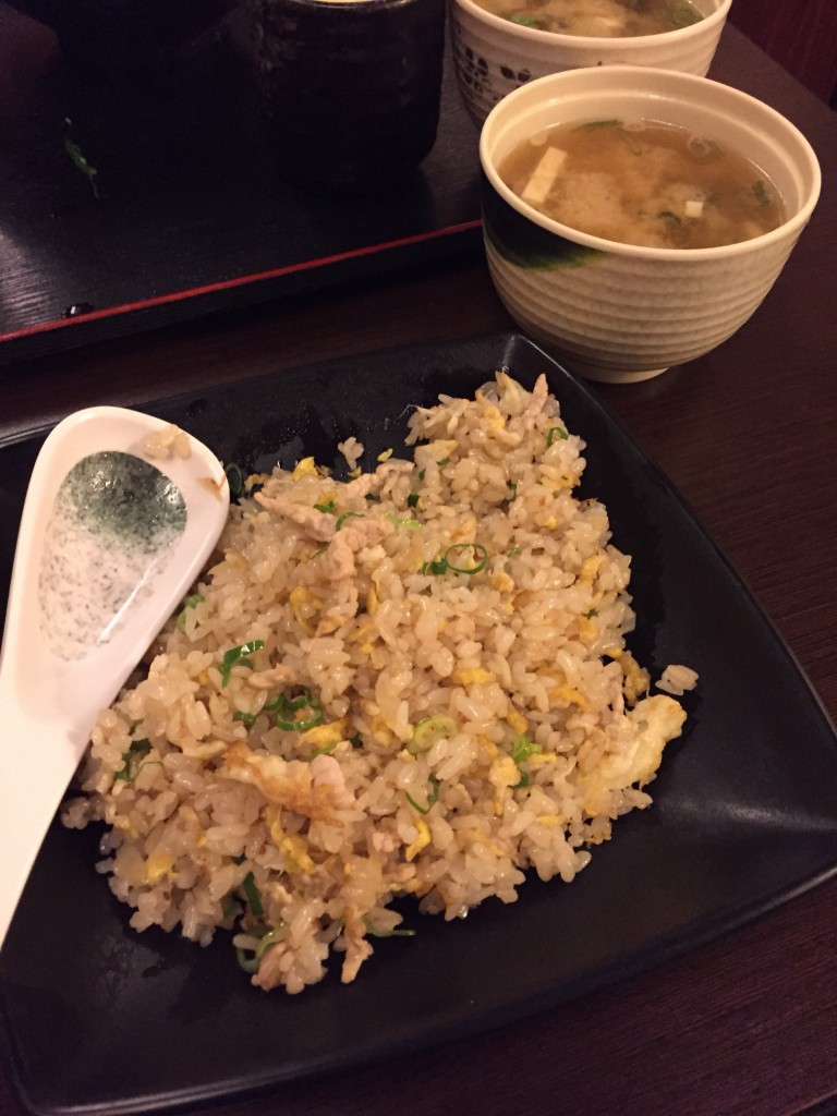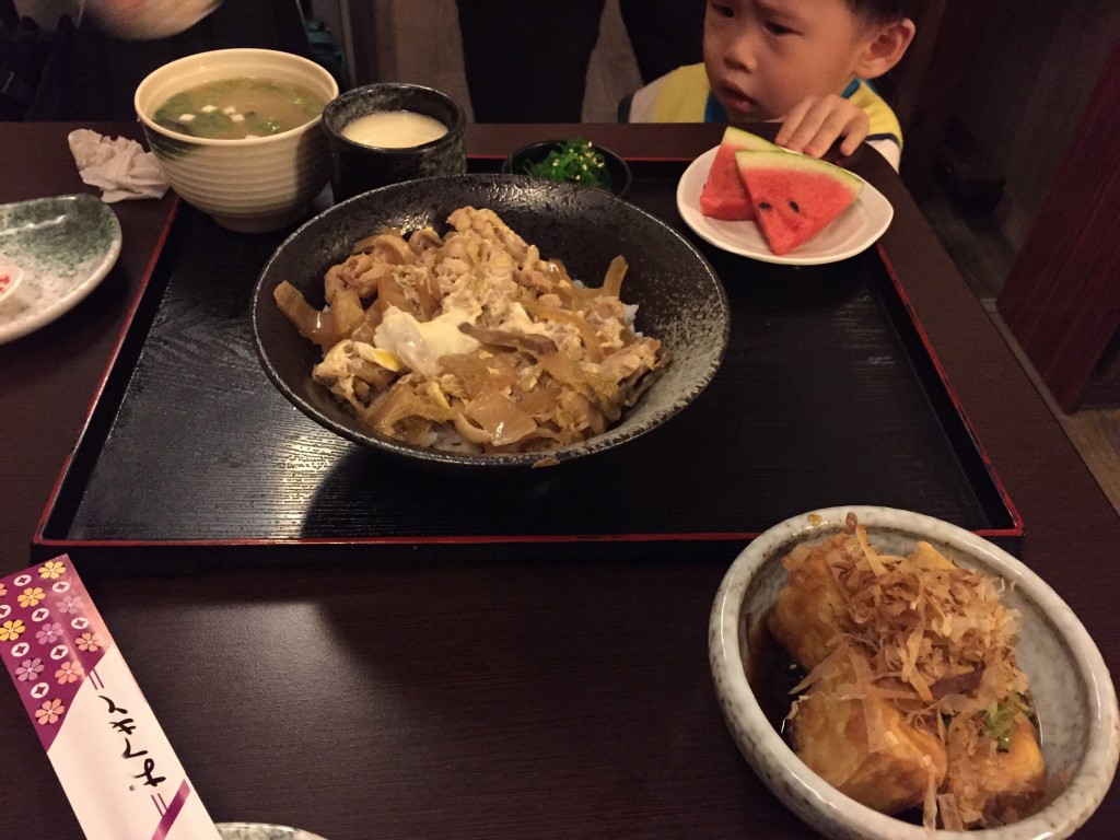 我們點了親子丼、肉絲炒飯、揚出豆腐及蛤蜊湯,還蠻好吃的,哈弟不知道是沒睡飽還怎樣,有點歡Orz