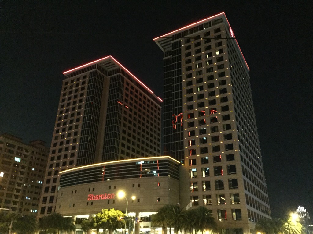 夜晚的竹北喜來登外觀還不錯美,特別跑到對面來拍一下,很壯觀很棒
