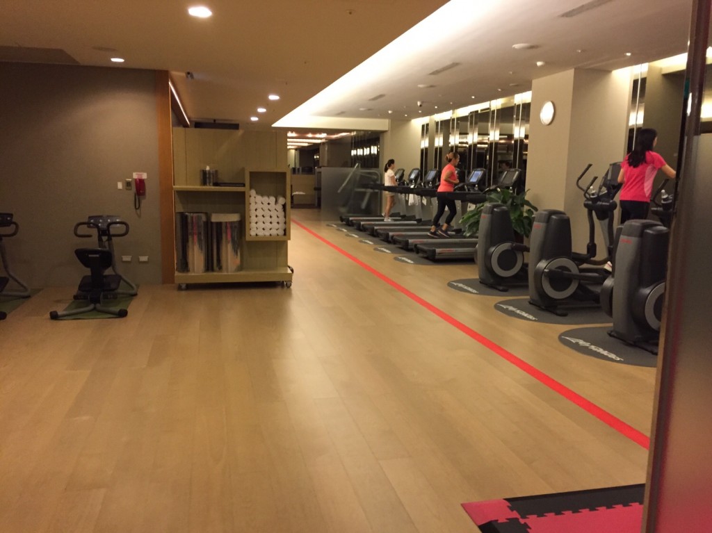 這運動環境還挺好的,跑步機、飛輪、伸展器材都有,也有人在使用健身器材