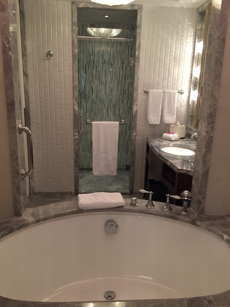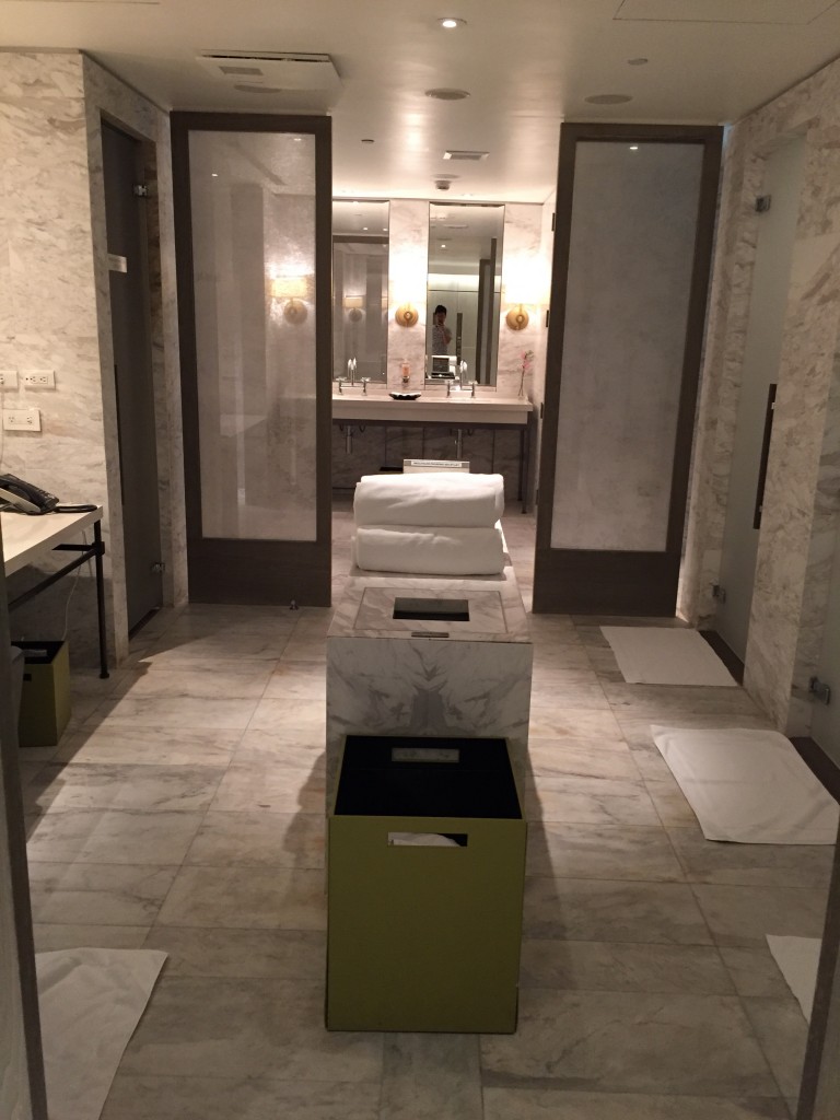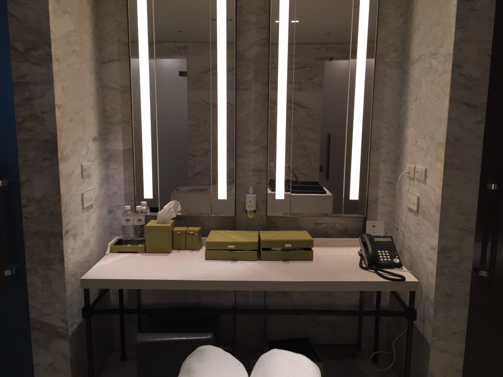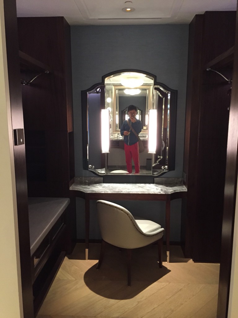 台北文華東方質感真的是非常的好~左半邊是浴室,右半邊是化妝室及行李置放區,格局設計跟上海及東京半島酒店以及廣州文華挺像的,不過台北更新更勝一籌