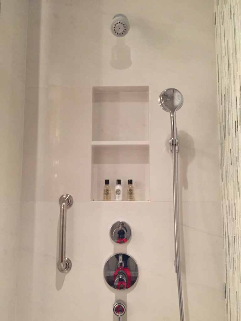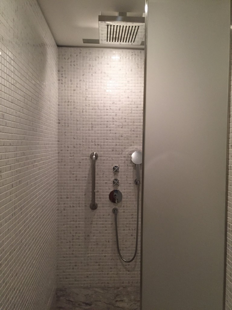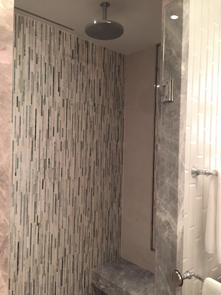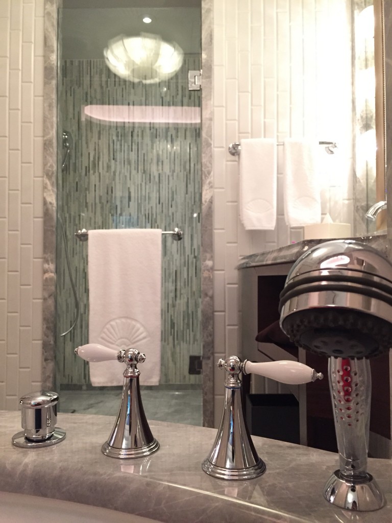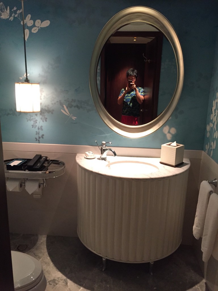 台北文華東方質感真的是非常的好~左半邊是浴室,右半邊是化妝室及行李置放區,格局設計跟上海及東京半島酒店以及廣州文華挺像的,不過台北更新更勝一籌