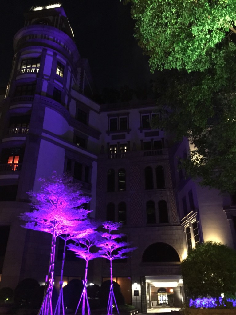 夜晚的文華東方,樹木與飯店在燈光照射下呈現浪漫的氣息~