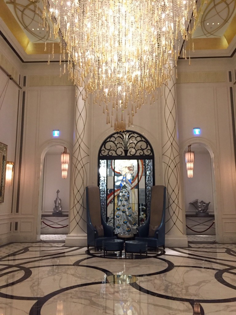進大門一拍~很美的大廳,水晶燈與椅子後面的牆面都超美