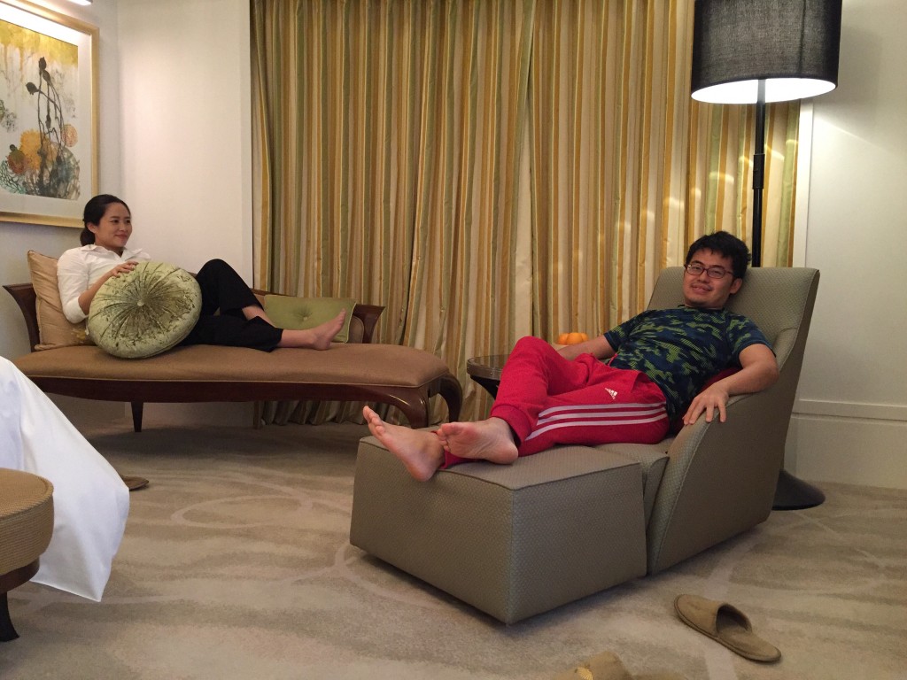沙發與貴妃椅拍一下,飯店也提供迎賓水果