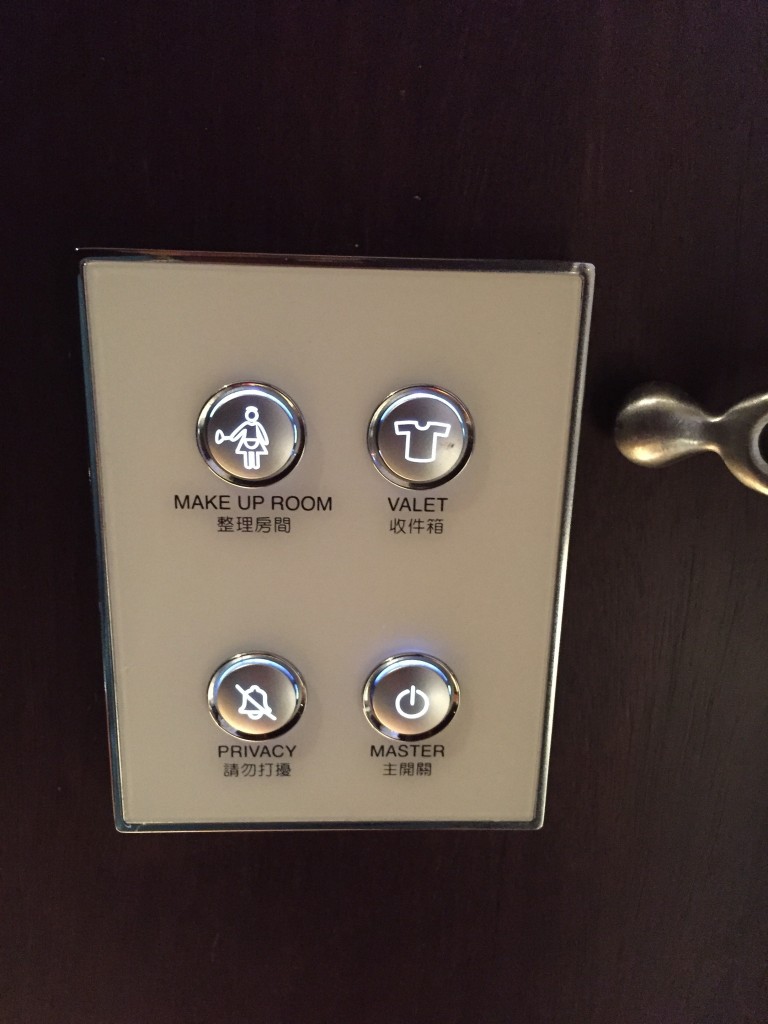 旁邊有按鈕可以選擇,不想要房務打擾記得按privacy