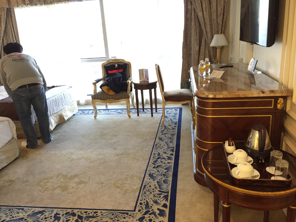 窗外的景觀還不錯,澳門不管是舊城區還是新城區(金沙城一代)的飯店水準都很讚! 基本上是屌打台北,但價格不會比台北貴多少,不過服務平均而言可能台北較佳