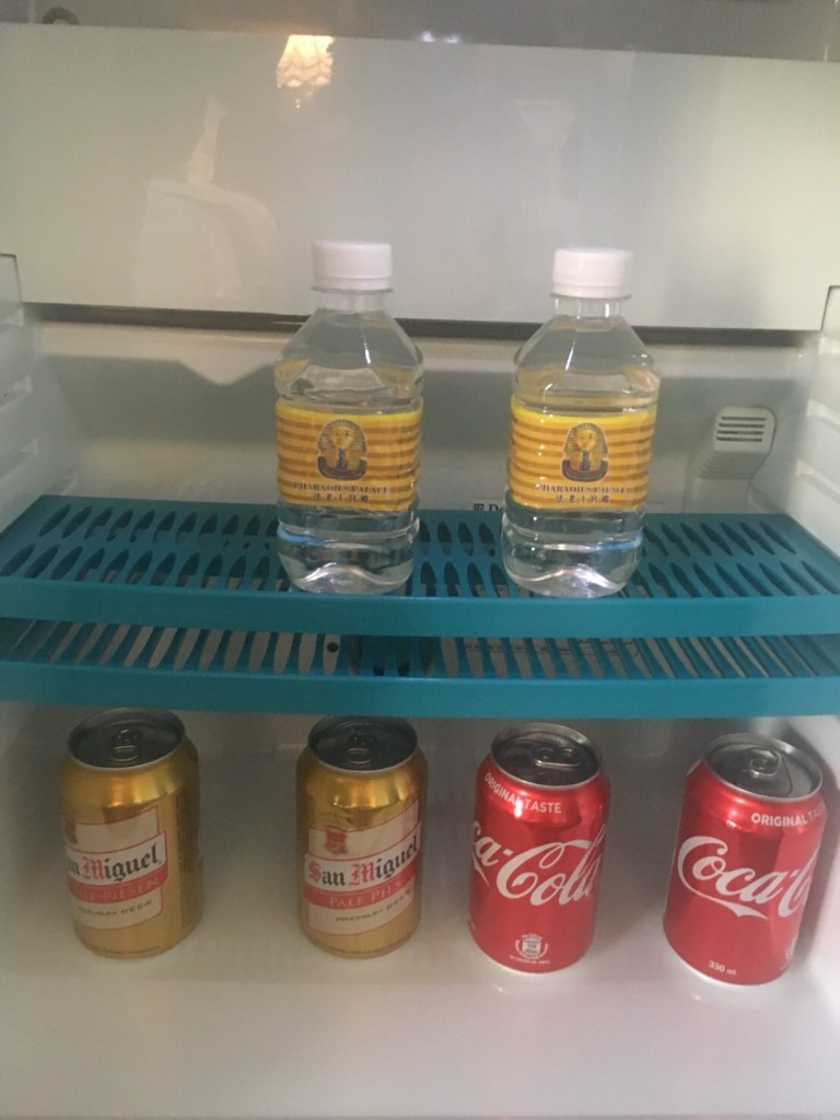 冰箱裡的飲料與礦泉水都是免費的,讚!