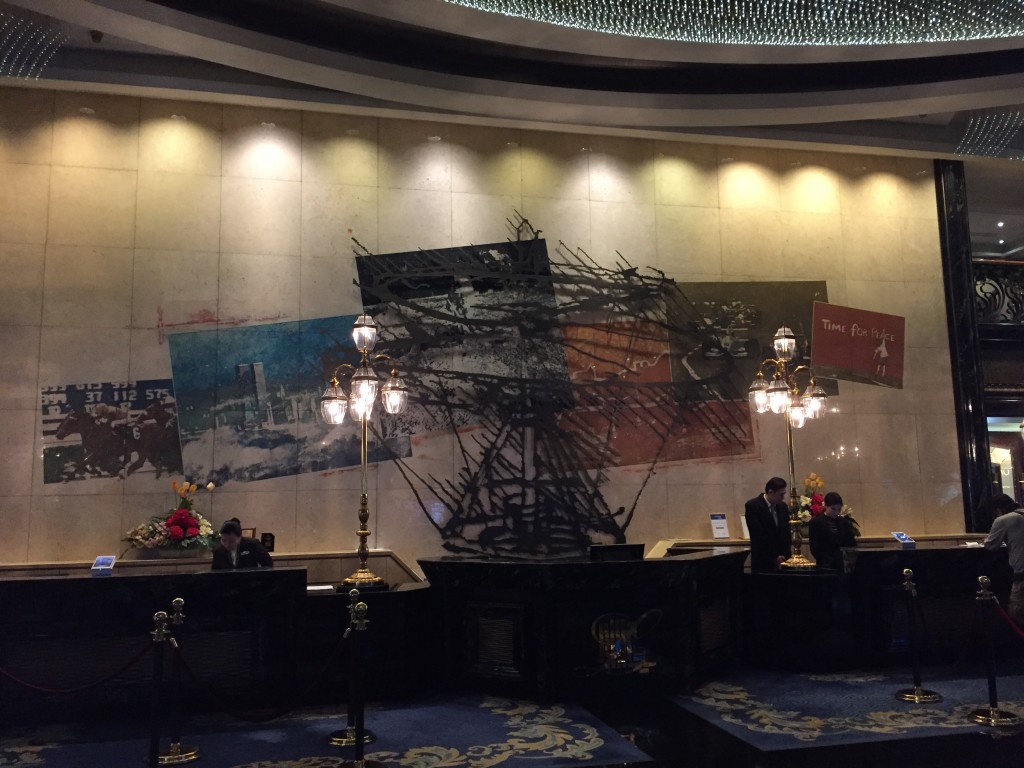 搭銀河接駁車到港澳碼頭後,在搭永利皇宮的接駁車到永利,下車後走個10分鐘就可以來到今日要入住的置地廣場酒店啦! 這次使用攜程訂房價格3K左右無早餐不會太貴,置地廣場的外觀也是蠻威的!