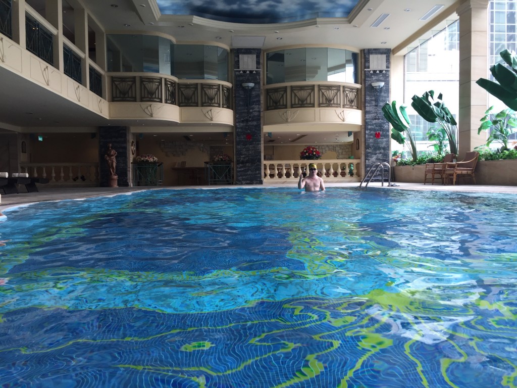 這次在澳門置地廣場的住宿經驗還不錯,置地廣場的位置還不錯,在美高梅與永利旁邊,基本高階房有10坪很舒適,浴室也很大備品是歐舒丹的也不賴,櫃檯的服務態度印象中算是中等,設施的部分泳池與三溫暖都很不錯,可以讓房客在出差商務之餘有渡假的感覺(雖然泳池是我跟David包場XD),算是很不錯的體驗啦! 一晚不含早最便宜大約3000元(用Ctrip訂)不貴,推薦好飯店給大家!
