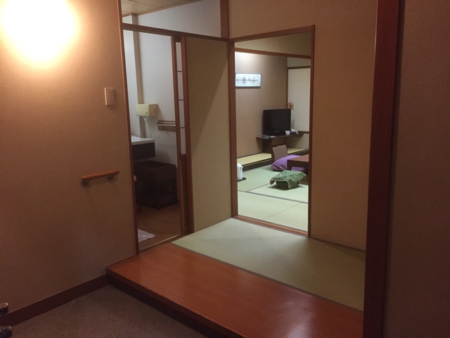房間褟褟米質感真不錯耶~一張桌子在陽台區可觀景,另一張在房內泡茶吃東西,都是和室房基本配備呦!另外照片裡面那不是門,是室內窗呦,室外室內各一個窗更可以避寒~