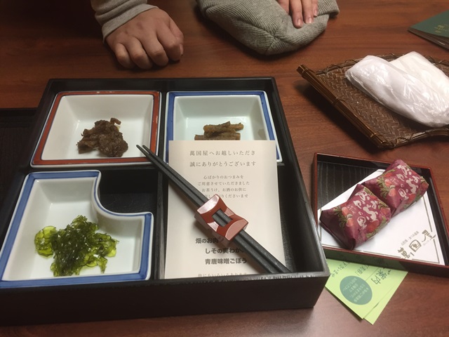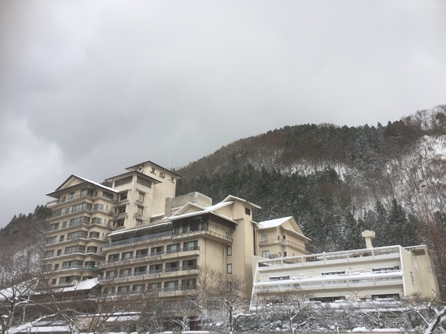 今日早上在橘屋checkout後,我們就到鶴岡市區走走繞繞買了些東西並吃了晚餐後,就搭JR回到了溫海溫泉站等待飯店的接駁車,今晚入住的飯店是溫海溫泉小有名氣的萬國屋位於鶴岡的溫海溫泉站,搭計程車大約5分鐘會到飯店,旁邊是上一篇網誌橘屋,萬國屋基本上是一間歷史悠久的旅館,1000年前即作為溫泉療養地而繁榮,亦被選為東北NO.1的著名溫泉,此地溫泉專治慢性皮膚病、神經痛、肌肉痠痛等,另外台灣人如果走新潟或鶴岡好像不少團體都住這間,我們用訂房網預定約3000台幣出頭含早餐價格還可以接受,也在這有個很好的入住經驗,按往例,先來張打卡組合照吧😏