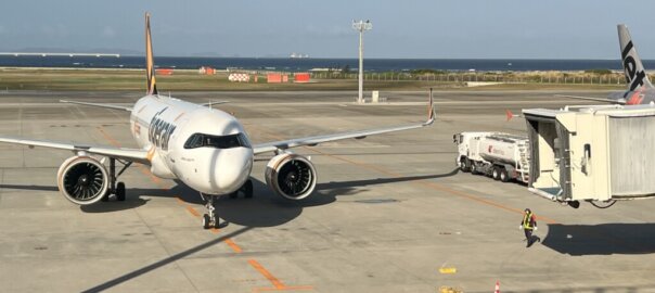 Dear 大家好,我是賴老師,這趟沖繩飛台北我選擇了IT231台灣虎航台北飛沖繩的班機,航班時間為10:10起飛,台灣時間10:40到達,為定期經營了蠻久的航班,這次搭到了虎航新機A320neo,地勤人員幫我安排了坐逃生門位置蠻有意思的,而且還可以較早登機,新機A320neo整體舒適度還不錯,不過引擎聲在起飛前還是有點小吵,準備登機!