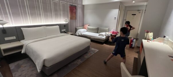 離開城中城水族館後我們就搭上Grab來到今日要入住的飯店 -Anggun Residences KLCC,這次一樣是預訂公寓式整層的房間,一房兩廳一衛約21坪還不錯寬敞舒適,客廳與廚房大理石地磚搭配裝潢質感不錯,房間木地板稍舊不過兩大床睡我們兩大三小非常夠用,浴室也有花灑可以沖頭還不賴,12樓窗外景觀還行,Agoda訂房價格1000出頭不貴,一樣需使用WhatsApp 聯絡房東(或管理人員),熟練訂房方式後就更容易順利入住,按往例,先來張開心打卡組合照吧^_^